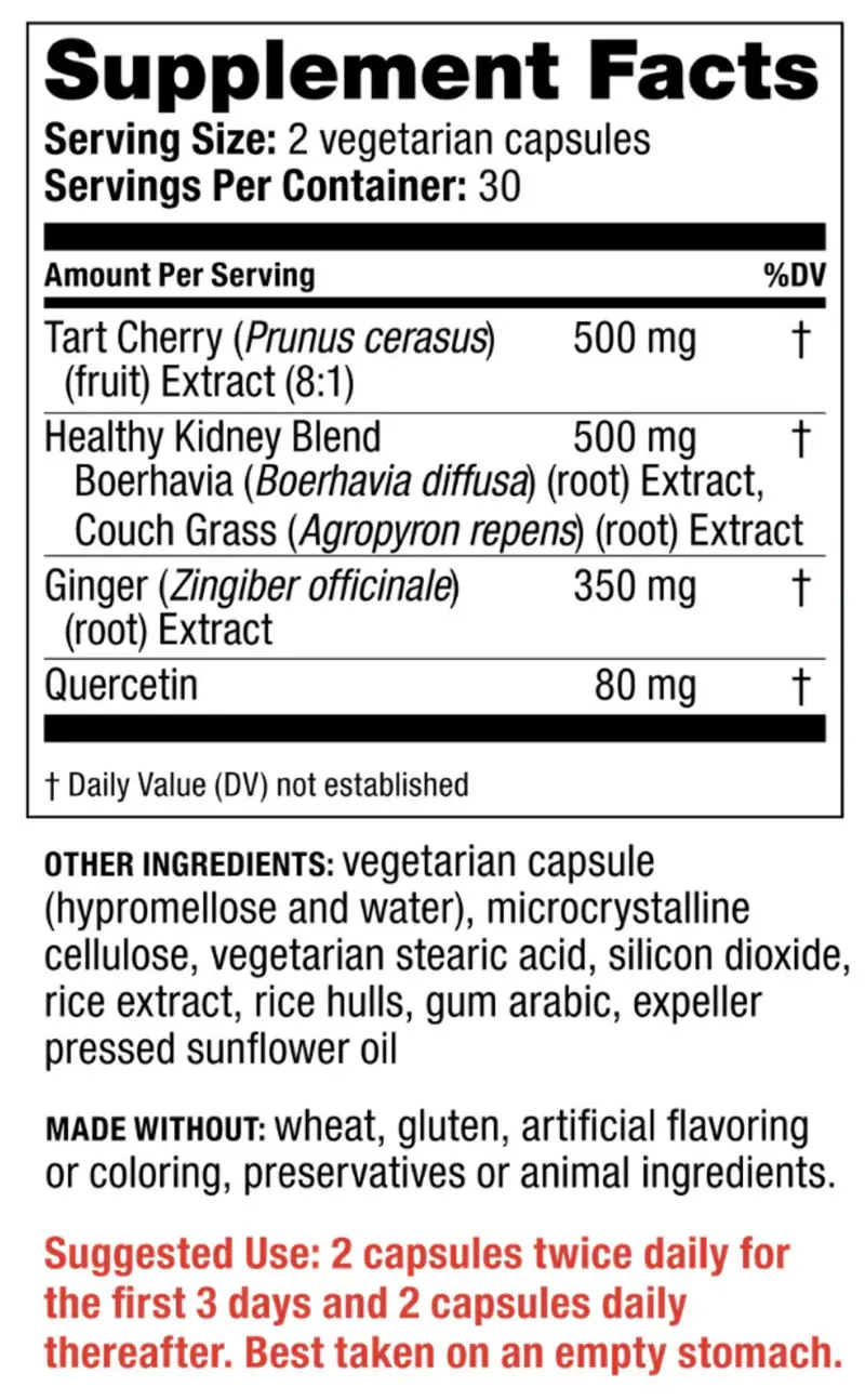 Supports healthy circulation essential to reduce inflammation and eliminate uric acid.
